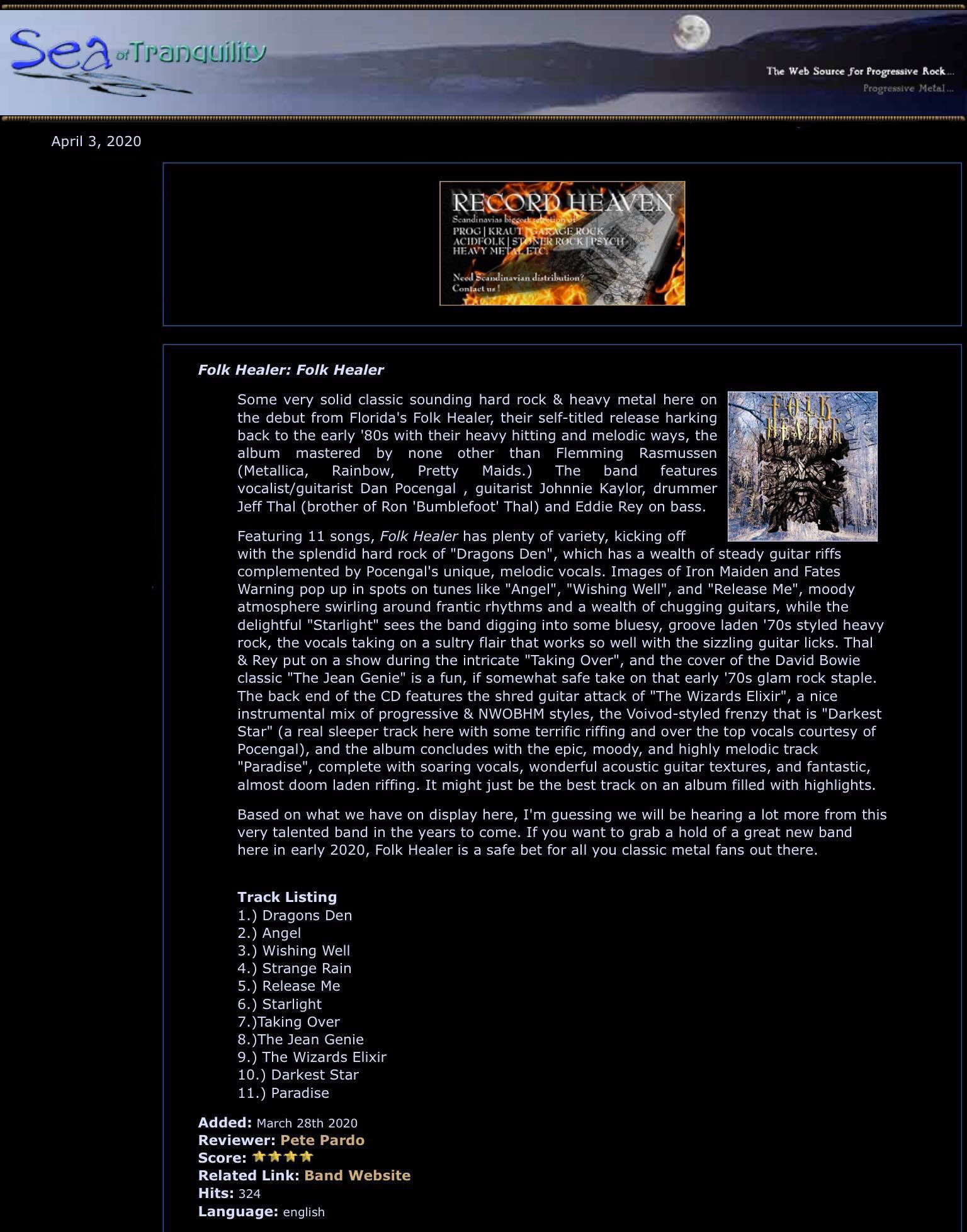 England An album I have waited a while to get my hands to say the least and I was rather impressed when I played it too which was recorded at Electric Angel Studios in Saint Petersberg, Florida, USA. It's very much Old-School Heavy Metal of the mid 80's style with Bruce Dickinson like vocals from Dan Pocengal with the line-up completed by Guitarist, Johnnie Kaylor and Brother of Ron Thal, Jeff on Drums with Eddie Rey on Bass. In fact, it was mastered by the legendary Flemming Rasmussen who gave us the sounds of such musical heroes like Metallica, Rainbow & The Pretty Maids. The sound production is second to none with standouts including 'Angel' with its glorious backing vocals; the echoey proggish ' Strange Rain' and the bluesy 'Starlight'. Then there's the knockout version of Bowie's 'The Jean Genie' where Dan sounds just like David. Or what about the closing magnificent ballad entitled 'Paradise' that sees it come to a musical conclusion really well. Pipe up this album which is well worth blowing a tweeter or two with. An elegant Metal release indeed. 8/10/2020
